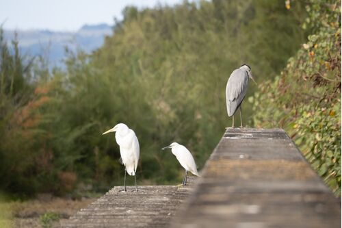 干潟にて。左から、ダイサギ、コサギ、アオサギ。 2021.12.12
